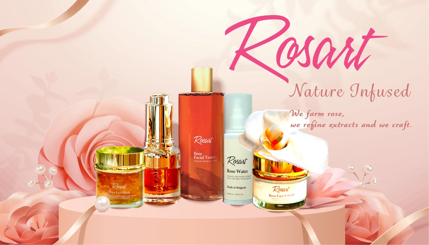 Rosart is a luxury beauty house rooted in the legendary Bulgarian Damask Rose Valley. We are not just a manufacturer — we are custodians of every step, from organic cultivation to distillation, from in-house production to final creation. This full-circle approach guarantees purity, authenticity, and excellence.
